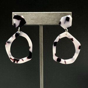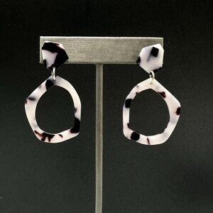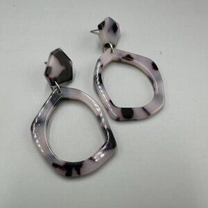 3/$30 Gray Black Acrylic Geometric Dangle Earrings Irregular Open Hoop1.75"