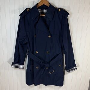 Lauren Ralph Lauren Navy Double-Breasted Belted Trench Coat Checkered Lining L
