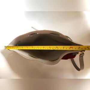 Minor stain on bottom and minor ripping on one of the holes that holds the tie.