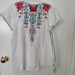 Johnny Was Floral Embroidered Cotton Top size Large