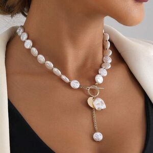 This stunning pearl necklace features elegant gold accents, perfect for adding a touch of sophistication to any outfit. Ideal for both casual and formal occasions.