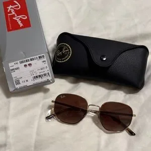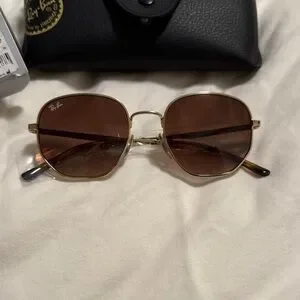 Elegant Ray-Ban sunglasses with gold accents and gradient brown lenses. Ideal for stylish outings.