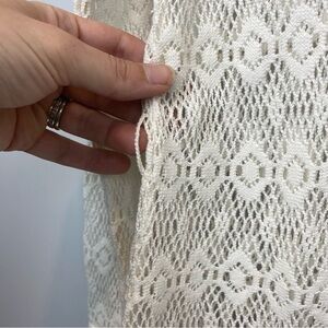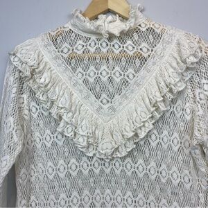 MAJE • Limba open knit high neck ruffle crochet sweater in ecru