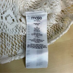 Evoking Victorian romance, a blouse of lavish crochet lace is festooned with frill and wrapped with a soft sash for a figure-flattering silhouette by Maje.