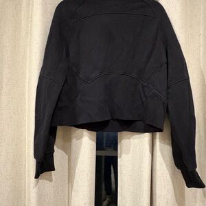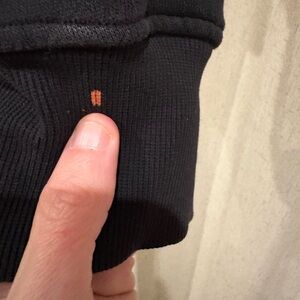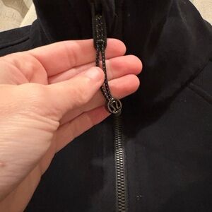 Black Lululemon scuba. In good condition other than one small spot on the sleeve cuff. Noted in the picture.