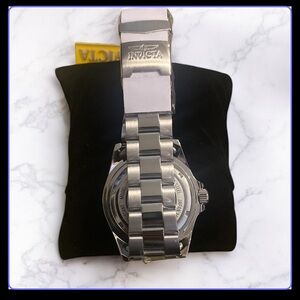 Elegant Invicta Pro Diver watch featuring a silver band and striking red accents. Ideal for any style.