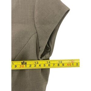 Round neck mini dress with short sleeves. Matching interior lining. Thin belt with metal buckle. Invisible back zip closure. Green