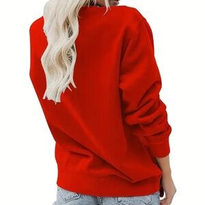 Cozy red sweatshirt with Witches Brew Coffee Co. graphic. Perfect for casual wear.