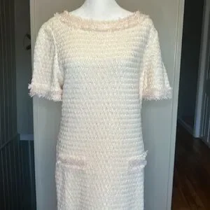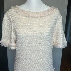St.John Tweed Sheath Dress Pink French Rose Combo With Silver Metallic Size 10