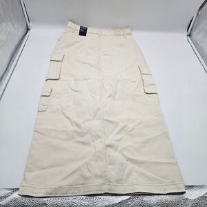 SCOOP Women Cream Cargo Maxi Skirt Size 8 Wide Leg Utility Pockets New With Tags