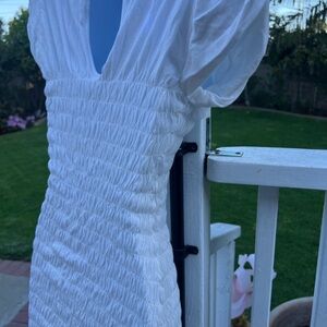 Step out in style with this Urban Outfitters mini dress, featuring a chic combination of tan and blue hues. The dress's mini length adds a playful touch, making it perfect for casual outings or a day out with friends. Its lightweight fabric ensures comfort and ease of movement, making it a must-have addition to your wardrobe. Dress is in pre-owned condition with very little wear. Color white, size xsmall. All of your questions are welcome. Thank you.