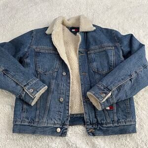Tommy Jeans ‘Archivr’ Sherpa Denim Jean Jacket Unisex Sz XS Cotton Blend Y2K