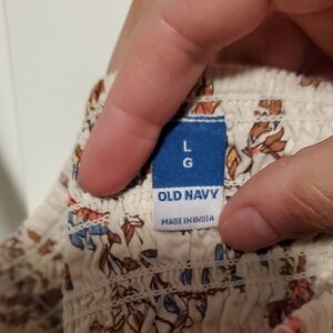 Chic floral maxi dress by Old Navy. Features a cream base with brown floral patterns. Ideal for casual outings or special occasions.