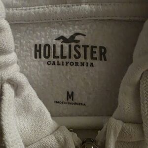 Hollister White Zip-Up Cropped Hoodie