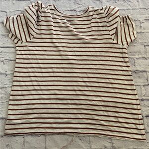 Chic short sleeve top with brown stripes. Perfect for casual outings. Soft and comfortable fabric.