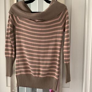 APOSTROPHE PINK TAN STRIP OFF SHOULDER SWEATER