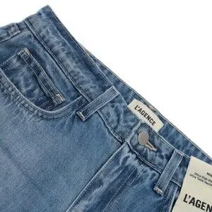 L'agence NWT Denim Jeans Sz 25 US Miley Ultra High Rise Wide Leg in Blue Cotton