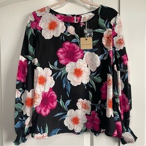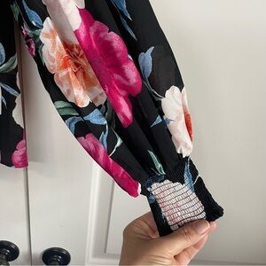 Gorgeous Blu Pepper Black Floral Chiffon Blouse Drop Sleeves