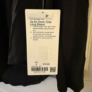 NWT Lululemon Up for a Down Time long sleeve tee, black, size 6.
