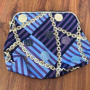 NEW Estee Lauder blue purple gold chain print cosmetic bag med