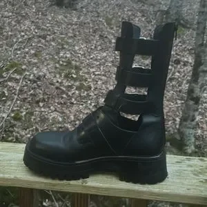 Step out in style with these chic black strappy boots. Perfect for adding an edgy touch to any outfit.