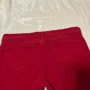 Elevate your style with these red boot cut jeans. Perfect for a chic and comfortable look. Stunning alternative to basic denim. Size 16.