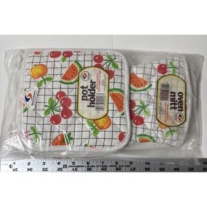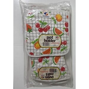 Vtg Skilcraft Fruit Oven Mitt Pot Holder Set 4pcs Vibrant Fruit Original Package