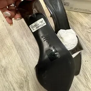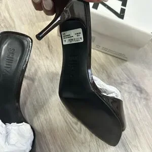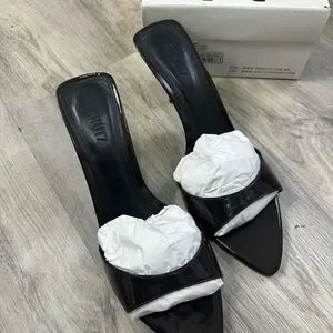 Elegant dark brown mule heels with a sleek design. Perfect for any occasion.