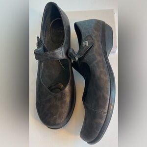 Elegant charcoal Mary Jane flats with a sleek strap. Ideal for versatile wear.