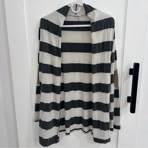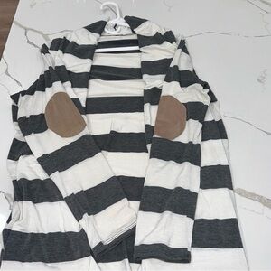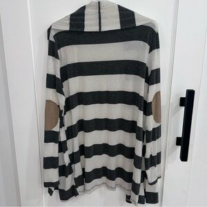 Honey Punch Striped Open Front Cardigan Elbow Patch Large