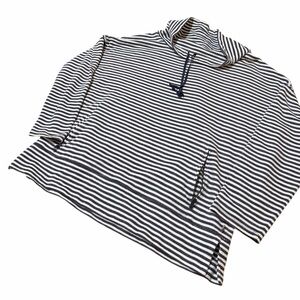 Stylish navy and white striped pullover. Features a half-zip design with a cozy fit. This item is a Talbots navy and white striped pullover, often described as a cowl neck or string neck sweatshirt.