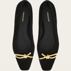 Women's Salvatore Ferragamo Gold Bow Detail Black Loafer, Size 7.5