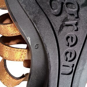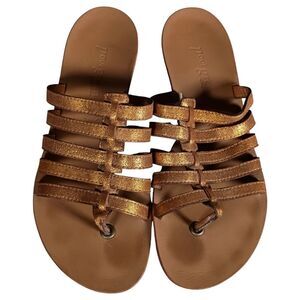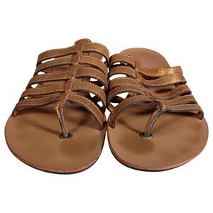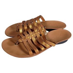Paul Green Metallic Gold Leather Strappy Thong Sandal Low Wedge Womens 7.5
