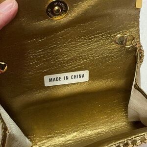 Shimmer with style using this elegant gold evening bag. Perfect for evening outings and special occasions. Item is in good, vintage condition. Perfect for prom or a special occasion. Measurements are pictured.