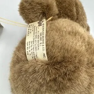 The Vintage Rare Luv Pets 1979 Russ Berry Baboo Teddy Bear Plush Animal is a charming 8-inch brown bear with tags, perfect for all occasions. Made of synthetic fiber in 1979, this original Russ bear features a retro design that makes it a collectible item for bear enthusiasts. Its vintage appeal and retired status add to its appeal, making it a unique addition to any teddy bear collection. With its classic brown color and adorable Baboo character, this plush teddy bear is sure to bring joy to both children and collectors alike.