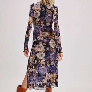 NWOT Free People Boho Blue/Purple Floral Gianni Midi Dress- S