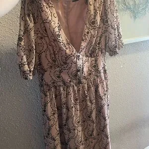 This elegant lace midi dress features a beautiful black pattern over a soft pink base. Perfect for any occasion, it combines style and comfort effortlessly.