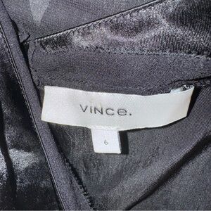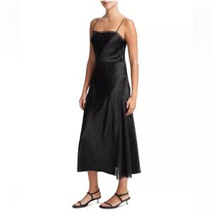 New with tags Vince Sheer Paneled Slip Dress in classic black. This elevated midi features delicate sheer insets along the neckline and sides, creating an elegant, modern silhouette that moves beautifully.