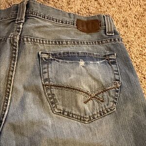 Stylish blue jeans with a distressed look. Classic five-pocket design. Perfect for casual wear.
