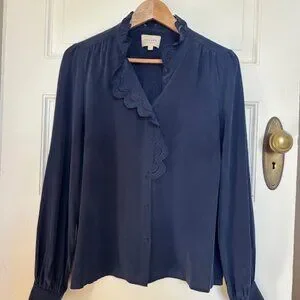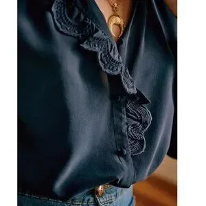 Iconic Sezane Chlo blouse, silk, navy size EU 40 (US 8) in perfect condition.
