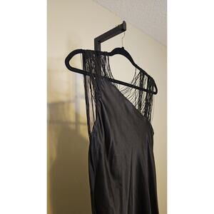 Max Mara Elegant Black Fringe-String One-Shoulder Dress Women’s 4 NWT