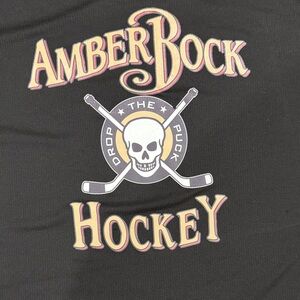 Stylish black tee with AmberBock hockey design. Comfortable and sporty.