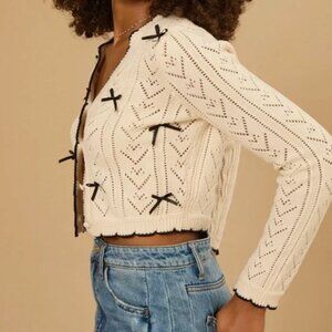Altar'd State Cece Cream Dainty Bow Cardigan