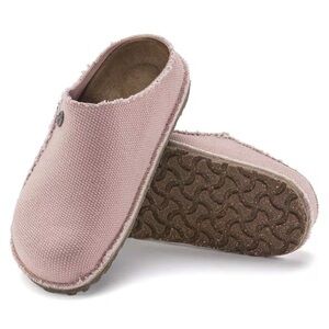 The Zermatt-- Birkenstock's first true slipper. Now featuring an extra grippy outsole in a unique rubber cork blend for added durability and traction. Perfect for casual adventures or just everyday. Unique heritage look upper with offset stitching and Birkenstock logo rivet. Removeable contoured cork footbed is lined in soft suede. - Upper: fabric - Footbed lining: suede - Sole: natural rubber - Details: clog with extended shaft; decorative stitching; decorative rivet - “Made in Portugal” - Size 37 In great condition! Will post photos later