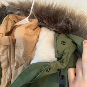Versatile olive jacket with interchange design. Ideal for outdoor adventures. 3 in 1 style so can wear together or separately making 3 jackets in one!