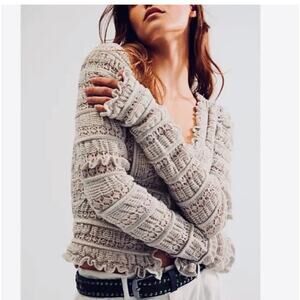 Free People Grey Wild Roses Cardi- S