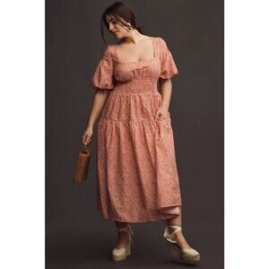 nwt by ANTHROPOLOGIE sz XL Puff-Sleeve Smocked Poplin dress