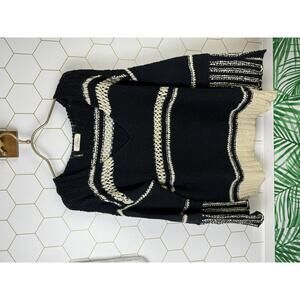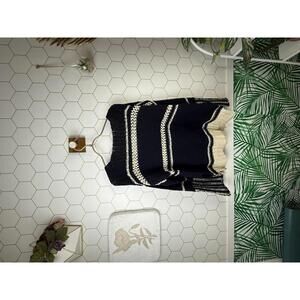 Elan Black and Cream Striped Cotton Knit 3/4 Sleeve Sweater - Size - Small