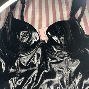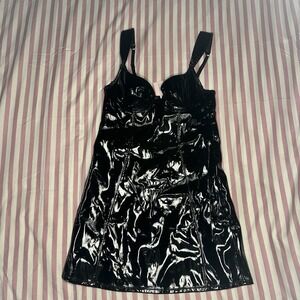 Hustler Hollywood Maxine Black PVC Wired Mini Dress Playful Promises Sz 6 US NWT