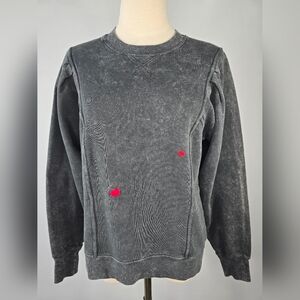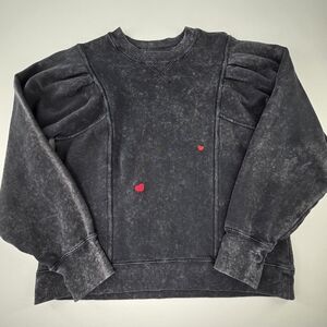 Sézane Women’s Charcoal Marbled Sweatshirt Red Heart Embroidery Size M